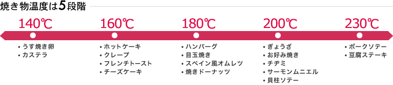 メニューにあわせて5つの温度を設定できます。