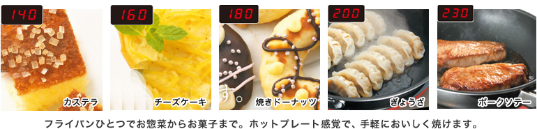 高火力で設定温度まで一気に立ち上げ、裏返すなどで一瞬温度が下がっても光火力センサーが鍋底温度を素早くとらえて設定温度をキープ。